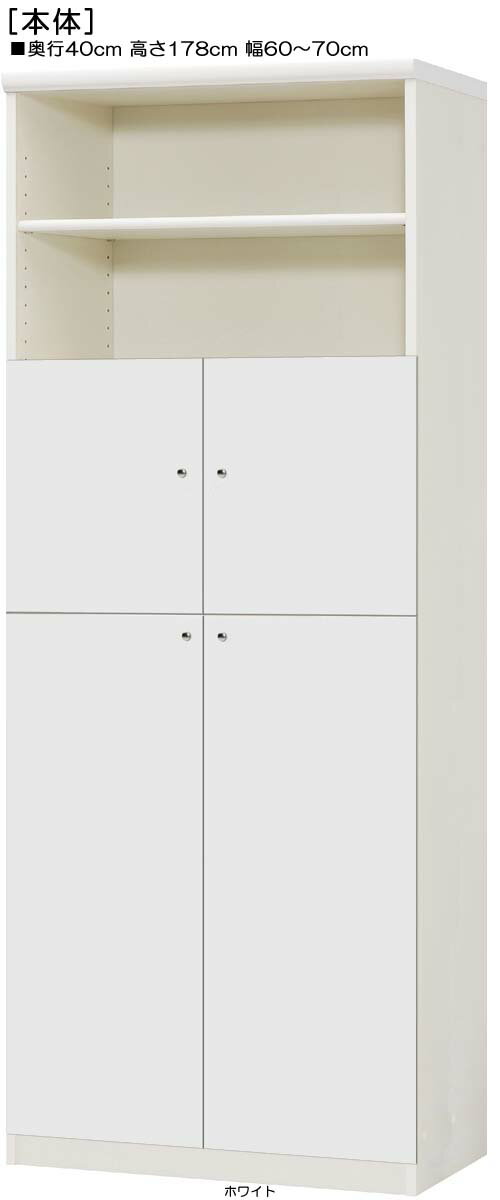 下部扉ワイド収納棚高さ178cm幅60〜70cm奥行40cm上下共両開き 扉高さ127.3cm 扉付サニタリ家具 ワイド収納棚