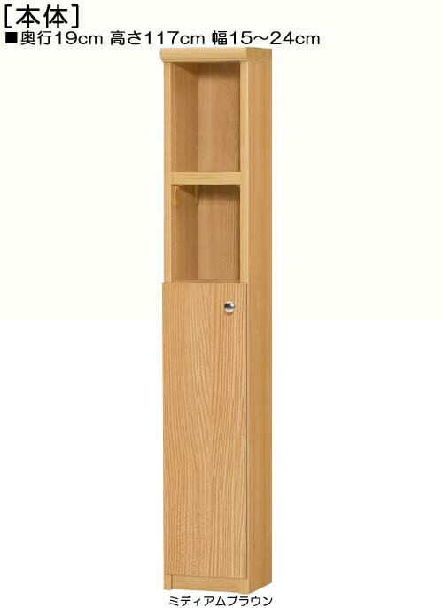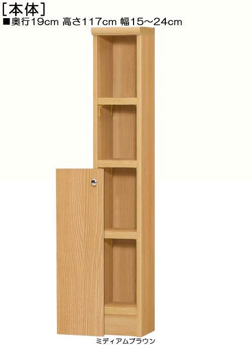 扉付隙間飾り棚高さ117cm幅15〜24cm奥行19cm厚棚板(棚板厚み2.5cm)片開き 扉高さ62.6cm 扉付サニタリ家具 隙間飾り棚